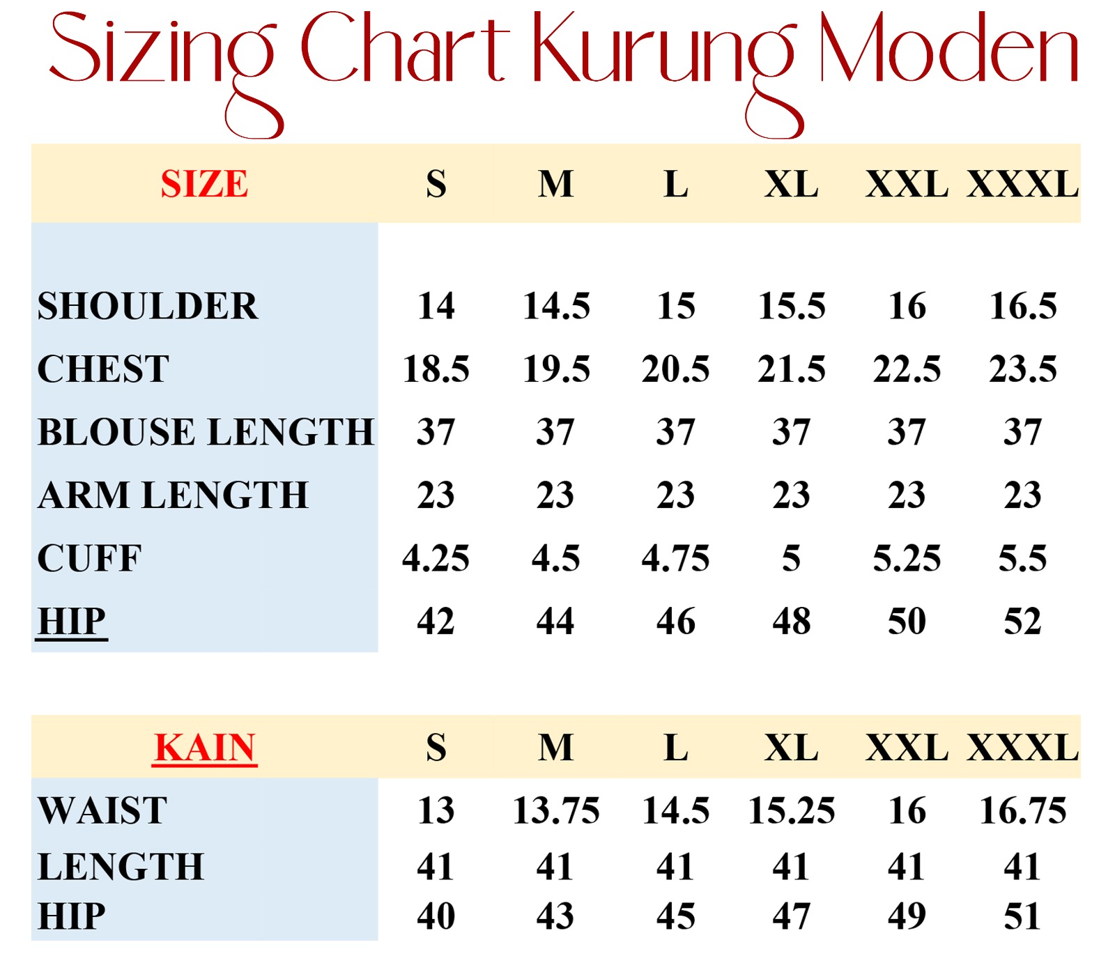 Small, Medium, Large, Extra Large, XXL, XXXL
